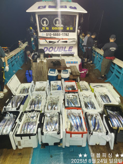 던지면 뭅니다 ^^ < 먼바다 갈치 > 텐야 텐빈 메탈24년 신조선 9.77톤 (22인승)먼바다 출조전문 (풍놓고 낚시합니다)ㆍ진해 IC ~ 선착장 7Km 거리 ㆍ먼바다 루어낚시 출조전용선 잠자리 20석 지정 (낚시자리와 번호동일)(개인 어탐기 10인치) (남여 화장실구분)기상과 물때에 맞추어 포인트 선정됩니다 15시30분 배에서 승선명부작성 (자리추첨배정, 얼음지급)출항시간 : 16시 ( 30분전 승선 )입항시간 : 06시전후 (선착장 도착) ( 꽁치미끼 예약하실때 주문필수 )( 저녁식사, 야식, 한강라면, 원두커피,편의점, 캔음료, 생수 )반갑습니다^^ 김선장 입니다 02목욜 4지급.3지급 철수조황 입니다.추석연휴 갈치 잘나올것 같습니다 물때가 살아나면서 갈치도 마리수가 나올것으로보입니다.추석연휴 예약가능 합니다.매일매일 열심히 뽑아 올려 보겠습니다 갈치 사이즈랑 마리수 걱정없이손맛보실 있도록 열심히 달려 보겠습니다 네이버 밴드명 : https://band.us/@double실시간 예약현황은 홈페이지에서 확인하세요 홈페이지 : http://double.sunsang24.com -- 채 비 준 비 --*텐야 (120g ~ 150g 전후)*텐빈 (30호.40호.50호)3단 까지만 허용 됩니다*갈치지깅 (메탈 80g ~ 150g 전후)*수심체크 가능한 릴 준비해오세요 *** 진해 더블피싱 예약 안내 *** 예약문의 : 010-6668-1782오시는길 : 경남 진해 제덕항 네이버 밴드명 : https://band.us/@double실시간 예약현황은 홈페이지에서 확인하세요 홈페이지 : http://double.sunsang24.com